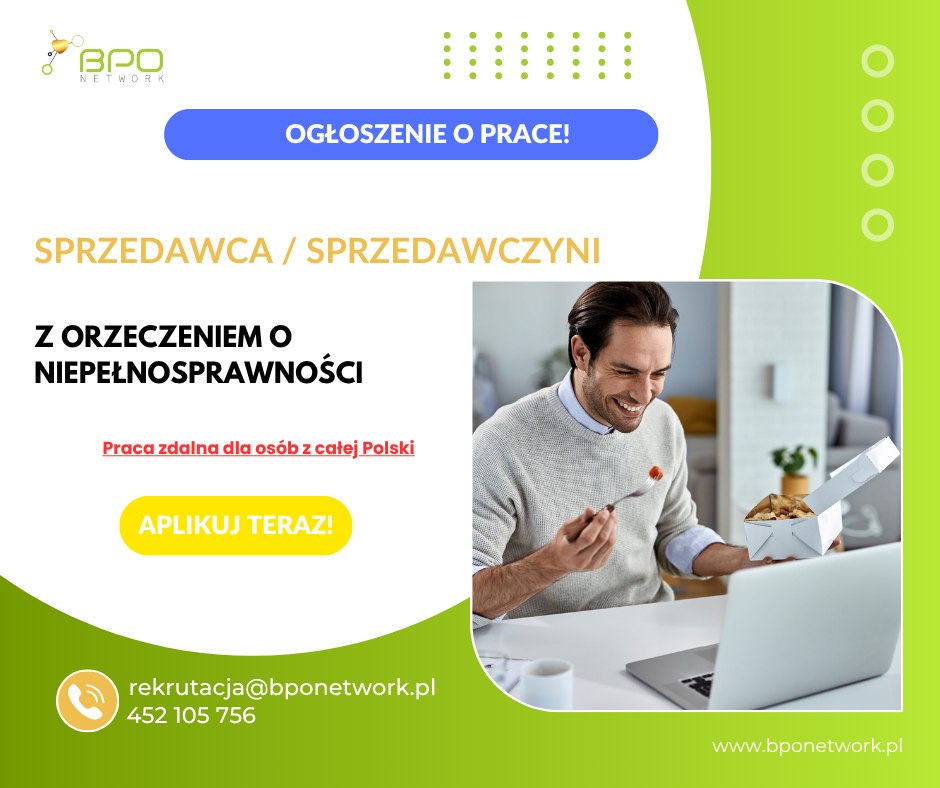Sprzedawca z orzeczeniem o niepełnosprawności (wysokie premie) cała Polska